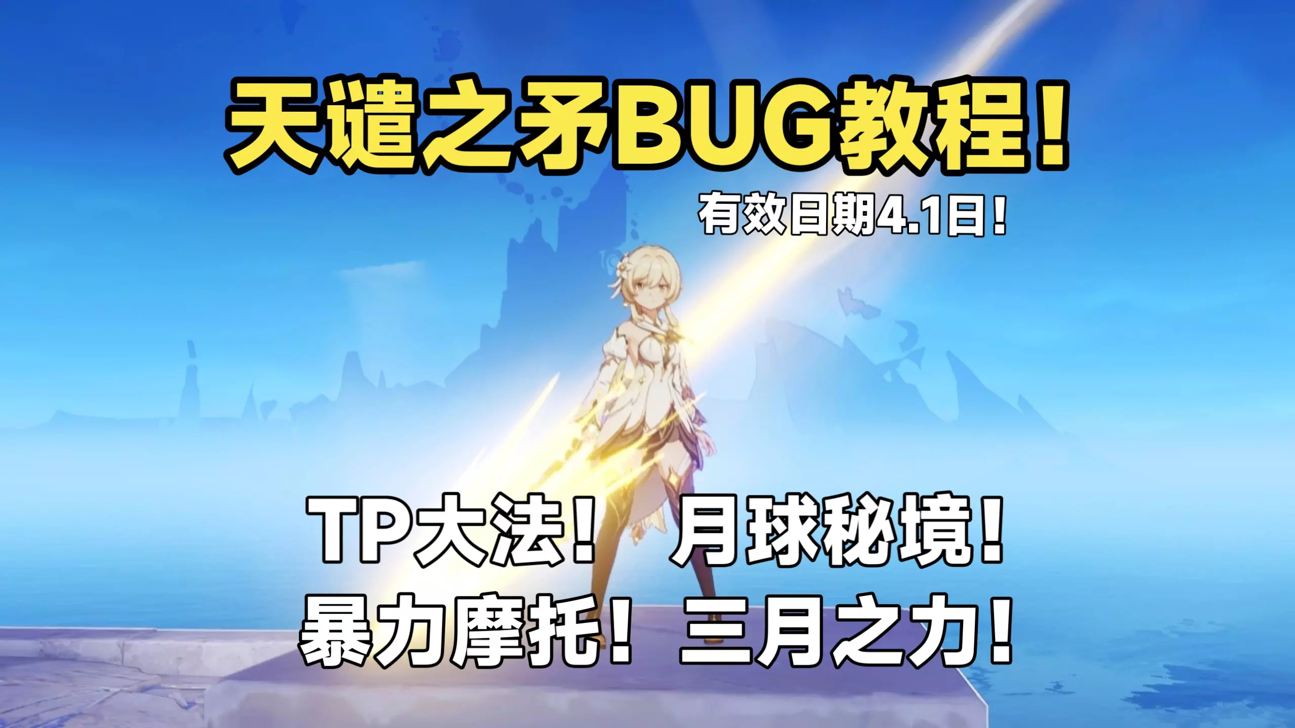绝密BUG清单如下: 天谴之矛 TP大法 秘境错乱 三月之力 暴力摩托 无断网出圈 愚人节快乐! 去年4.1视频:https://b23.tv/fdFf8eU …