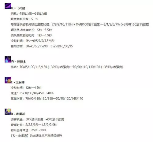 其他技能的调整改动,大多就是数值以及效果的提升或削减,例如Q技能腾跃被动调整到4层,或者额外移速降低,但额外移速的时长及损失时间降低等等。莉莉娅本身的优秀的技能机制,很适配比赛版本,如今莉莉娅的调整改动,不知能否成就莉莉娅重回比赛舞台! 加点推荐