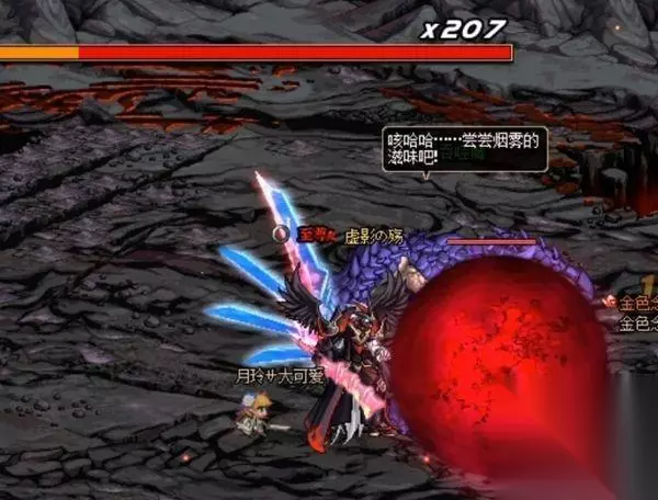 3.召唤血球:(如果没有在血球爆炸前破坏掉血球,血球爆炸后会有小型黑雾能量球吸入地壳,会有黑雾从左边开始向右边蔓延,一次血球引发的黑雾蔓延是半个屏幕,两个就会几乎全屏蔓延)