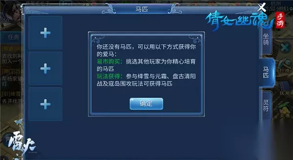 通过绛雪与元霜、盘古清阳战、寇岛围攻等玩法有机会掉落马匹,而和好友一起通过马匹繁育的方式也可以培育小马驹,当然易市中也可以买卖马匹。