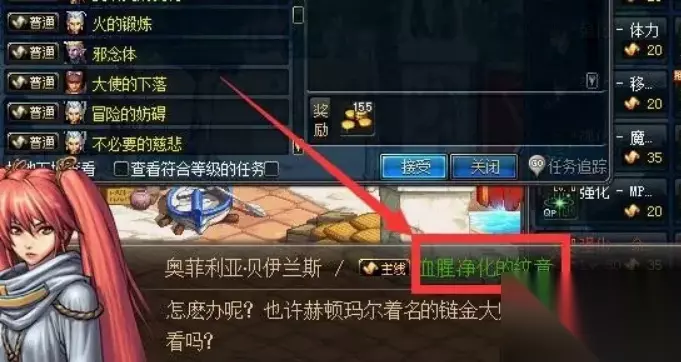 血腥净化的纹章任务攻略 1、进入游戏后,找奥菲利亚领取对应任务