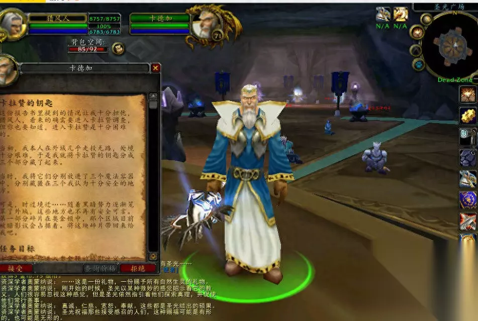 交步骤2任务后,可以接到【卡德加】,把报告交给沙塔斯城的卡德加,卡德加老爷子在沙塔斯城圣光广场的中央。