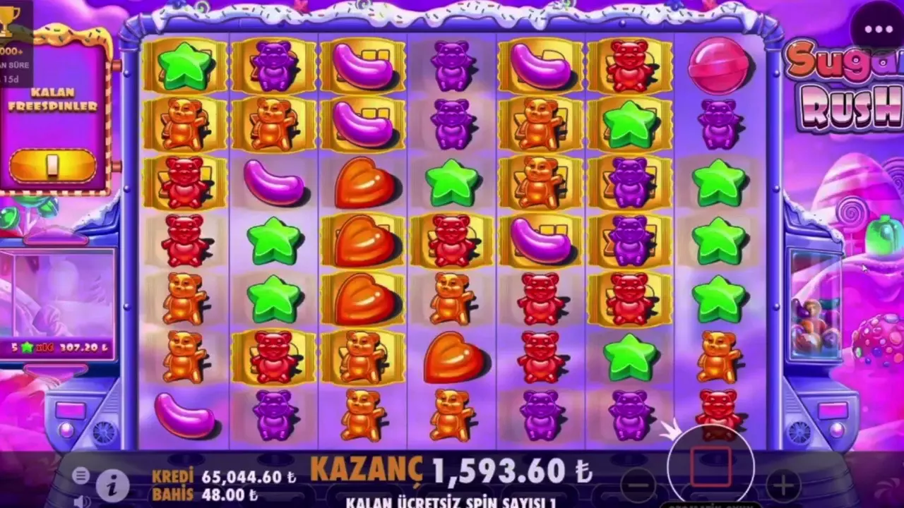 这是休闲消除类游戏Sugar Rush 1000的游玩展示,玩家在游戏中通过消除糖果图案赢得奖励,还获得了免费旋转次数,最高赢得1144.92元,展现了游戏的趣味与奖励机制。
