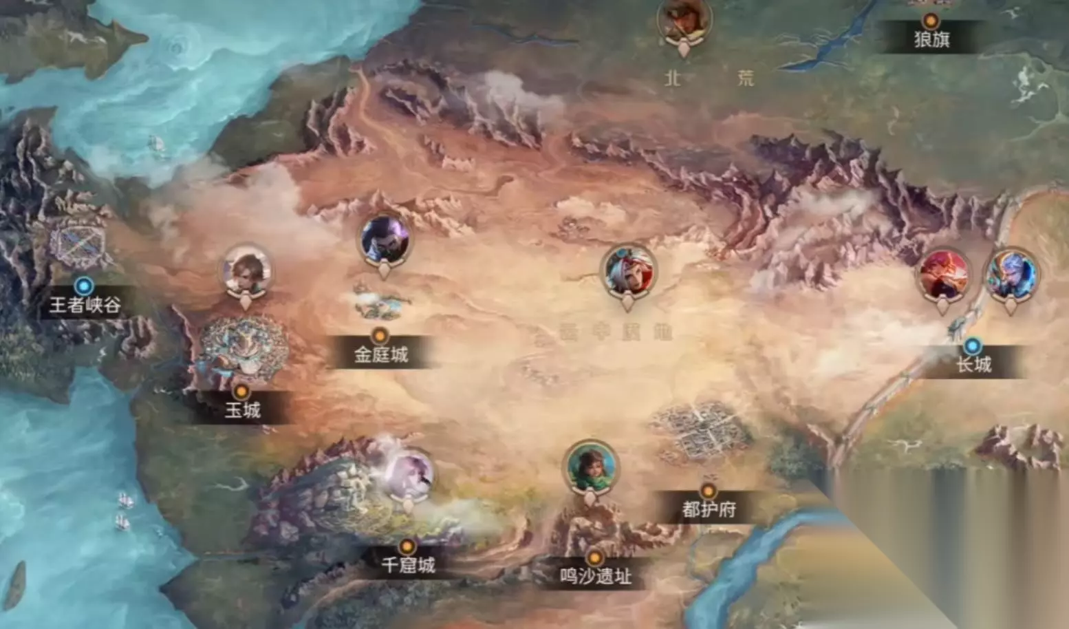 大陆中部区域是剧情推荐和游戏拓展玩法的主要所在地域,分为河洛、北荒、云中末地三个区域。河洛是盛唐长安的繁华之地,是体验正统王者剧情的重要区域,北荒一片苍茫的冰原荒漠,充满了肃杀之气,云中末地是一座边塞要塞,地形险峻。这一带是姜子牙、东皇太一、项羽这些大人物的活动地,玩家在这里既可以感受到各种各样的战斗方式,也可以对王者世界的宏大历史有所体会。
