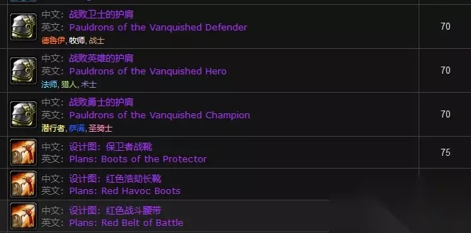 T5套的兑换材料根据职业不同,需要的护甲徽记也不同,战士、德鲁伊和牧师需要的护甲徽记是战败卫士系列徽记。盗贼、萨满和圣骑士需要的护甲徽记是战败勇士系列的徽记。法师、猎人和术士需要的护甲徽记是战败英雄系列的徽记。且这些护甲徽记根据部位的不同,由5个不同的boss掉落。