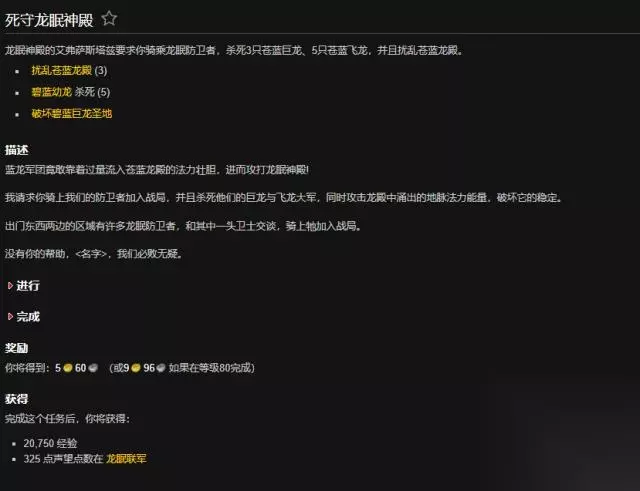 魔兽世界是一款大型多人在线角色扮演游戏,迅速防御成就需要在不组队的情况下,3分钟内完成“保卫龙眠神殿”任务。