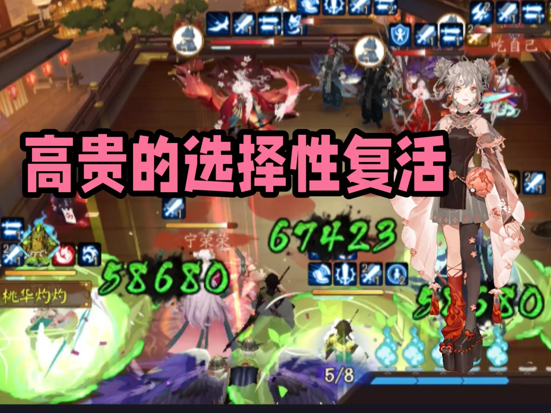 式神阵容:山风、鸠、椒图、数珠、凤凰火、彼岸花、镰鼬 前六层没什么好说的,AOE呼就完事了 1、第七层,吸血姬造成伤害是,有几率给目标施加一个流血标记,该标记叠加至3层时,会使该目标变成吸血鬼,吸血鬼将使用普攻攻击友方单位。 2、第九层开始,吸血鬼普攻攻击友方单位时,吸血姬将进行协同攻击 3、第十层加入月相变化,敌方每行动2次,增长一步月相;满月时,若敌方单位有流血减益效果,吸血姬的能力会永久加强,并释放大招对敌方全体造成伤害;满月时,若敌方单位没有流血减益效果,则吸血姬自身眩晕1回合。