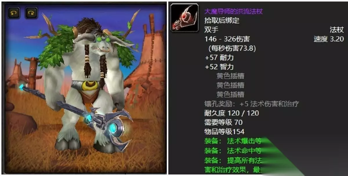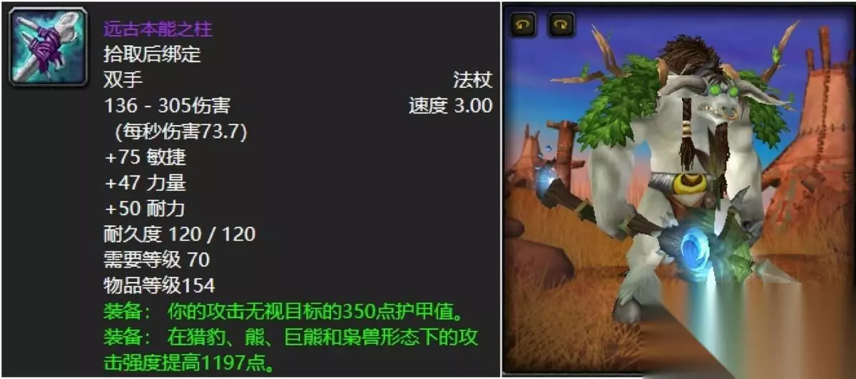 毒蛇神殿小怪掉落的野性怒火法杖,可以说是入手极其简单却极具性价比。毕竟对于需求纯防御向的话,他可以说的上是最为实用的顶流神兵了。无论是护甲还是耐力都高,再者54点的躲闪等级提高真的不一般,你入一根高压之下弱弱的掏出来穿戴上去必然有如神助。 四:狂野之柱
