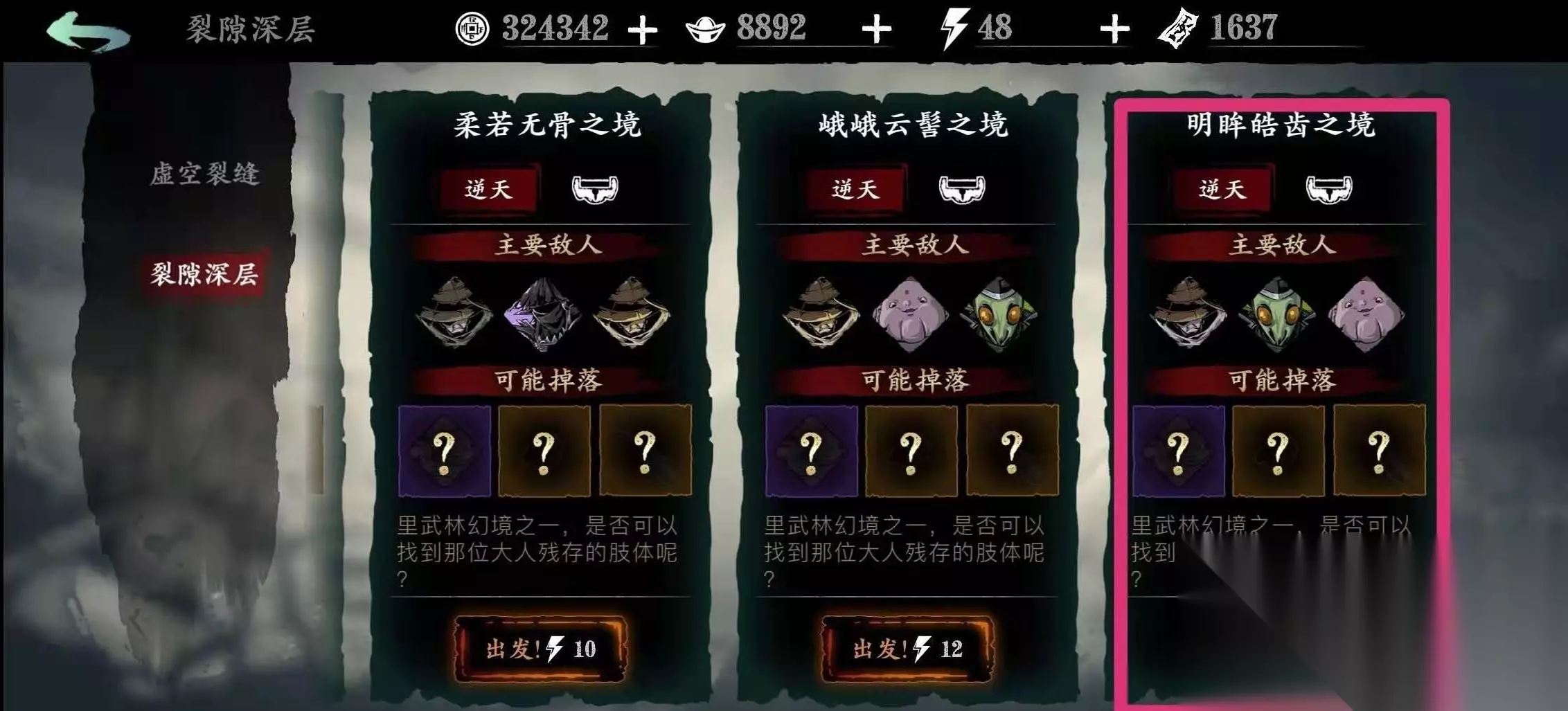 觉醒技能是角色成长到高级阶段后解锁的超强力技能,其基础数值非常可观,能够显著提升角色的战斗能力。与普通的进阶技能不同,觉醒技能可以被编排在玩家的技能链之中,并能够装备心法来进一步强化其效果,这使其成为构建后期输出体系的核心组成部分。获得并装备觉醒技能,首先需要完成解锁条件。玩家角色需要达到50级左右,并前往虚空裂缝副本进行挑战。具体的解锁关卡是虚空裂缝第二层的明眸皓齿之镜,并且必须选择逆天或更高的难度才能完成任务。这个副本本身具备一定挑战性,存在时间限制,且敌人强度较高,因此建议玩家在装备和心法有一定基础后再去尝试,也可以考虑携带护卫角色来分担压力。完成该挑战后,即可解锁觉醒技能。