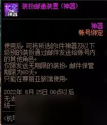 使用后,可以将所选的1键神器及以下级别的装扮通过邮件发送给账号内的其他角色。