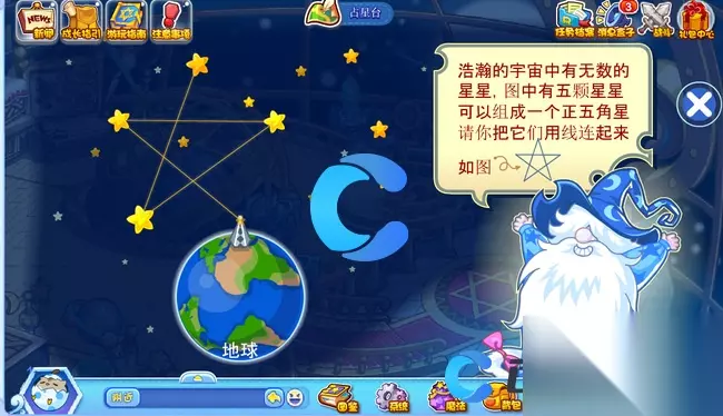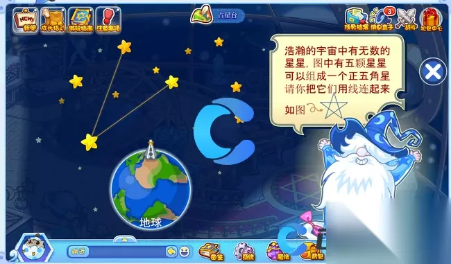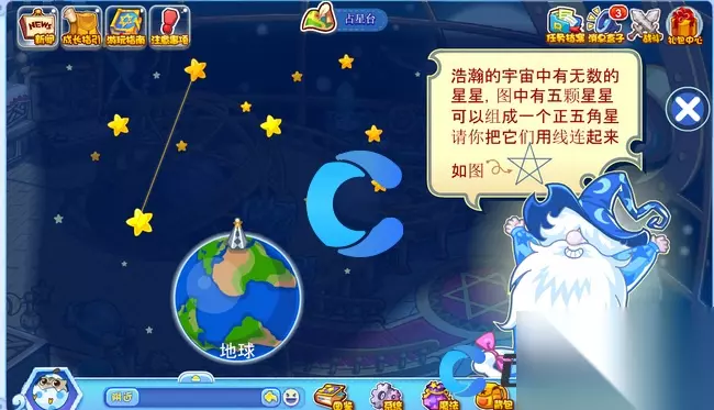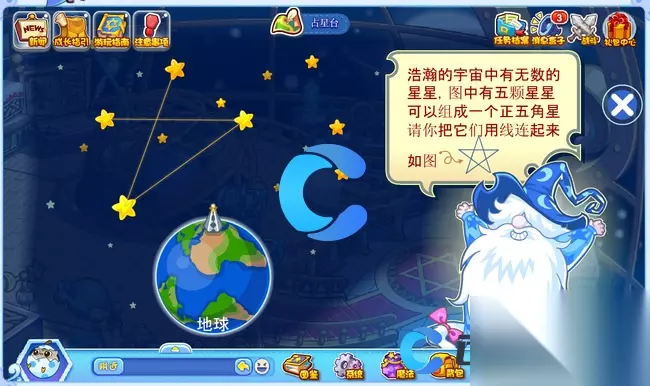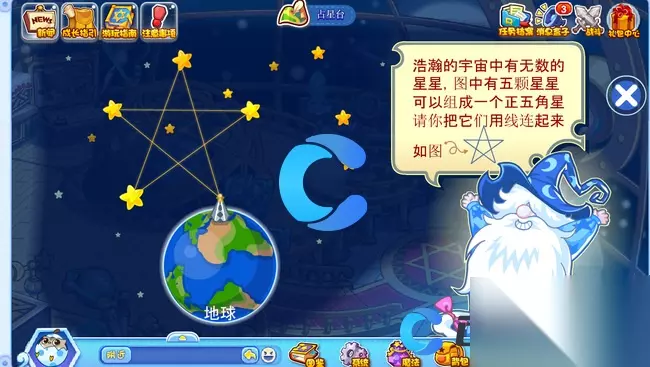 《洛克王国世界》占星台五角星连线方法 洛克王国世界占星台五角星怎么连线 1、首先,玩家要抵达占星台,接着点击下图所示的图标。