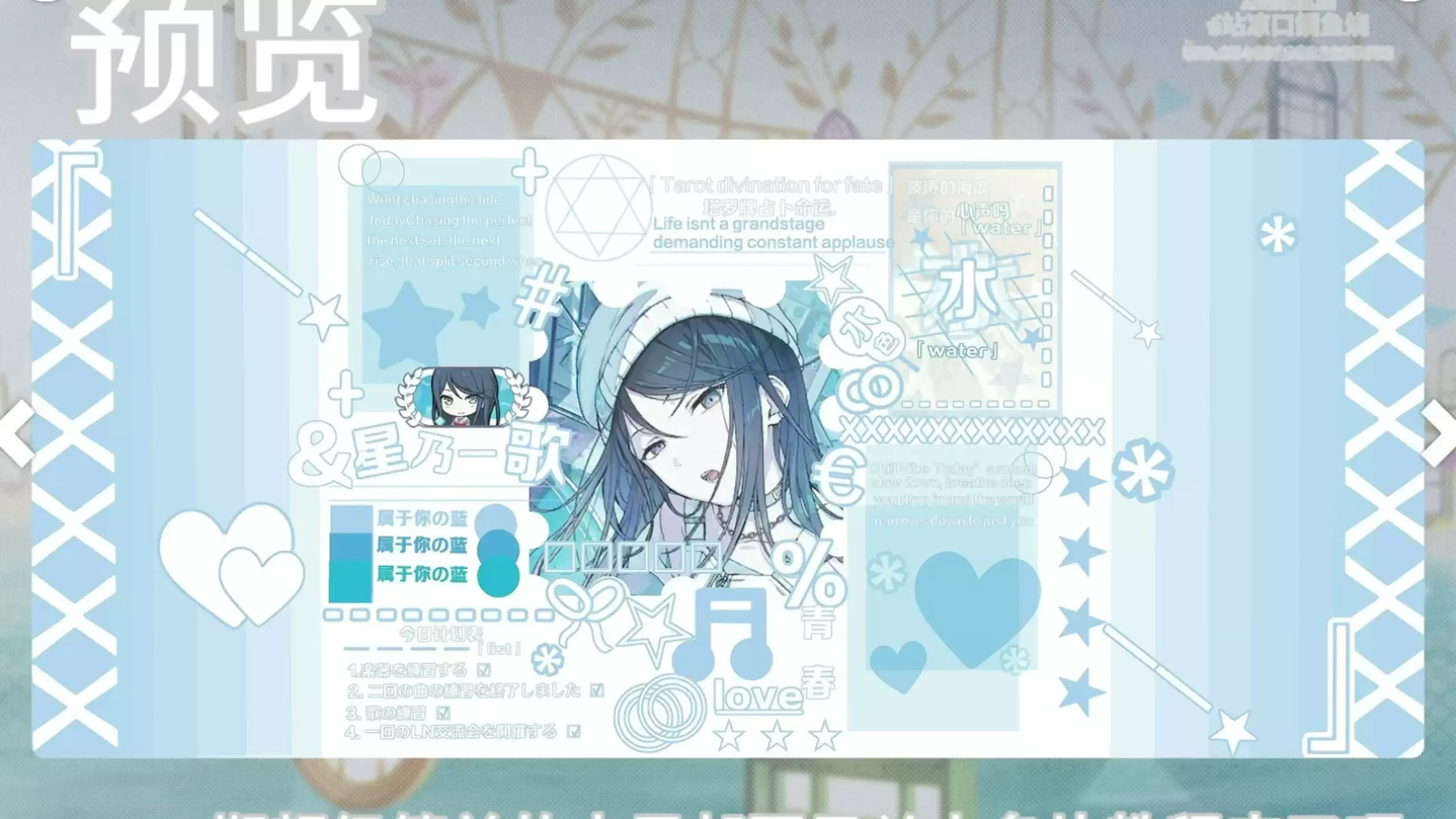 这次是尝试了几种风格的元素的融合,左边的小卡,中间的播放器和右边的胶卷。最左边的文字是一些我喜欢的歌的名字,用来填充那里的空白 部分文字特殊效果附在这里了: <…