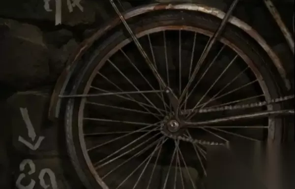 7、点击画面右侧柜子可以获得闹钟,出来进入院子,将车链子放到自行车上面,获得线索。