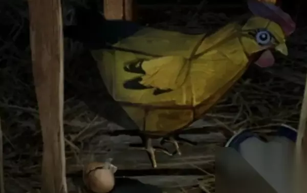 2、再点击右侧电线杆查看童谣线索,从门点击进入院子,右侧有个小簸箕将麻袋拖进去。 3、可以获得小米和砂石,院子门左边木箱下面有一只纸做的鸡,将小米放到它的碗里面。