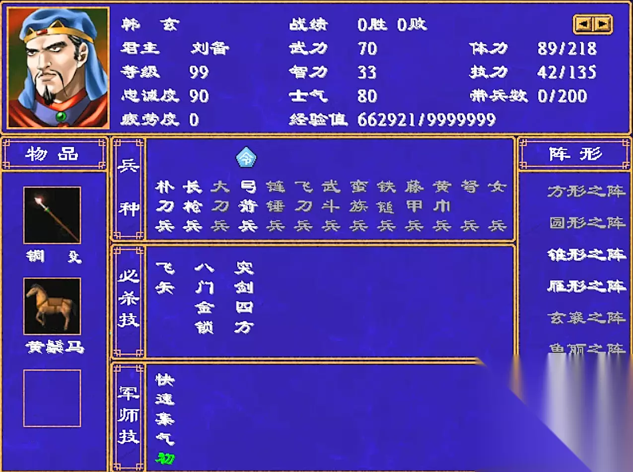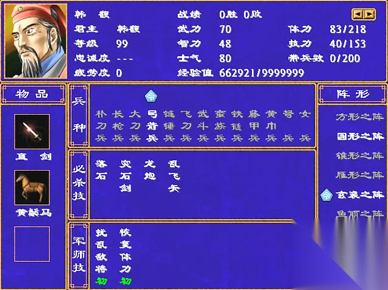韩玄武力68,智力33 武将技3个:1级的飞矢,12级的八门金锁,23级的突剑四方 军师技1个:1级的快速集气(初) 韩姓将领都没必要大篇幅评价,看看属性技能就差不多了。