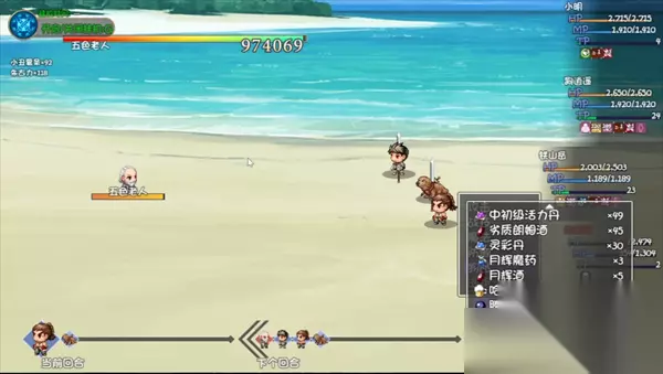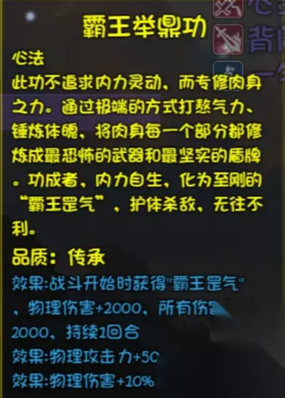 如图,在五色老人出现后继续选择击杀,携带“霸王举鼎功”的人抗下伤害,第二回合自动结束战斗