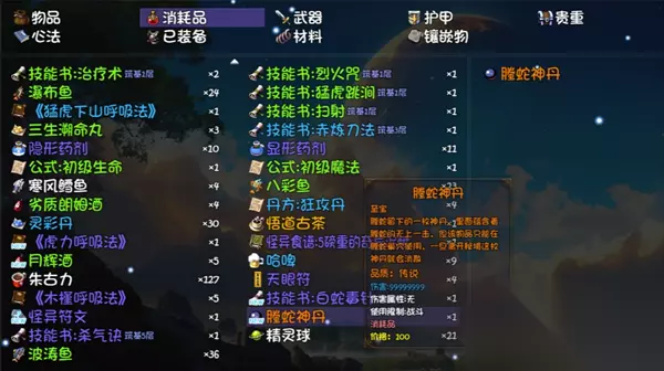 在第一层使用符文出来后触发战斗,使用腾蛇神丹击杀