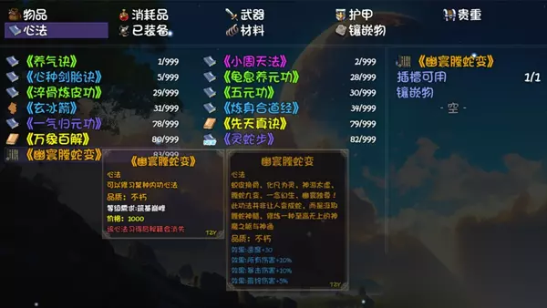 在大千世界2游戏中,幽寰螣蛇变是一种较为强大的心法。是在过五色老人任务的时候获取的一个功法,玩家最好在筑基后来完成,以下是获取的具体方法分享。 大千世界2最强心法幽寰螣蛇变怎么获取
