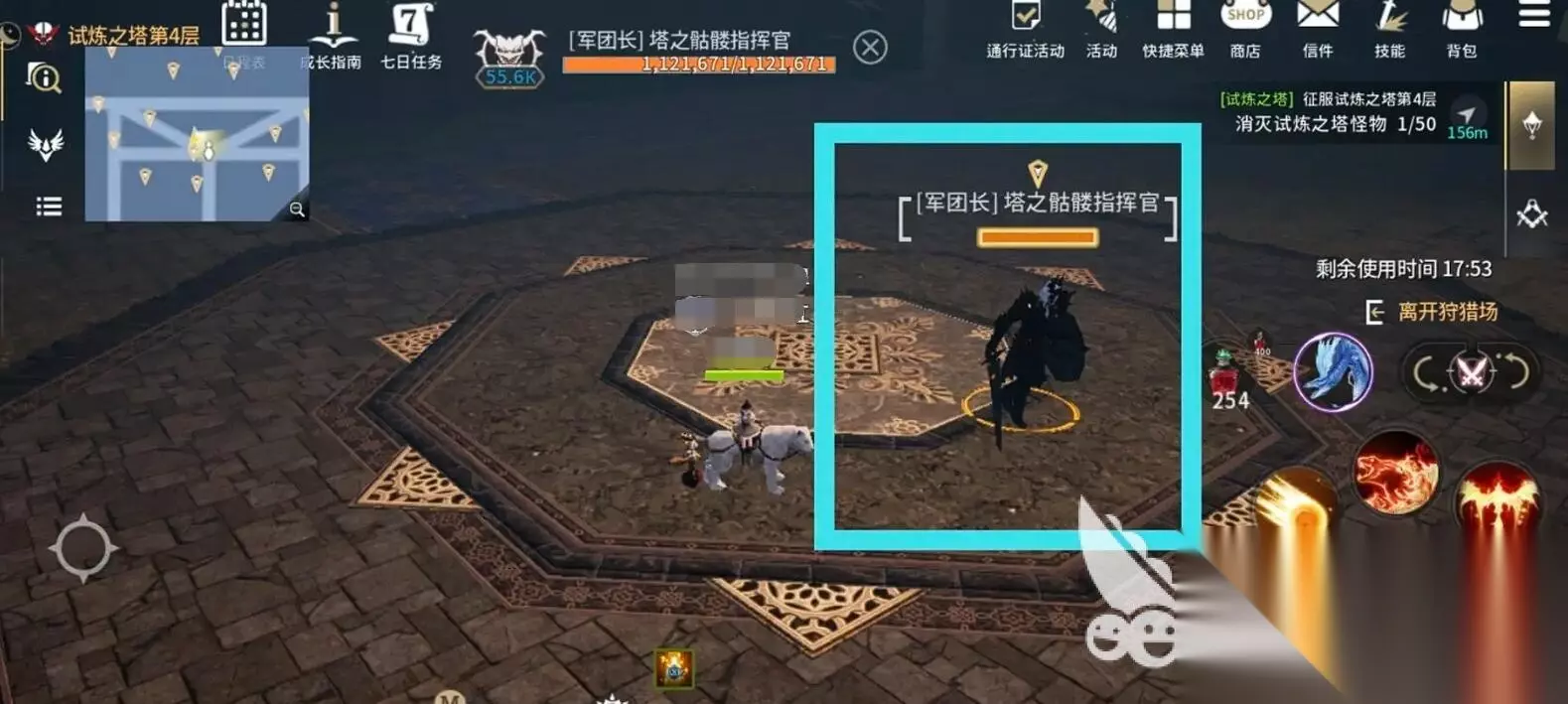 试炼塔每层分为六个小关卡,前面就是精英怪,后面鬼潮,最后关底BOSS然后再精英怪的套路。低层精英怪难点在冲锋,如果大家想要开荒小编还是建议镰刀的死神变身快速收割,后面的BOSS基本都比较强力,毒蝶会释放毒雾,需拉开距离用弓箭放风筝,鬼潮关卡需优先清理远程单位,避免被群体集火秒掉。每层通关后可获得敬重印记,累计到数量能兑换领袖气质等炼血技能,永久提升角色属性。新手可以去拿着双倍药水去吃高额经验,当然一定要看好加成效果剩余时间。