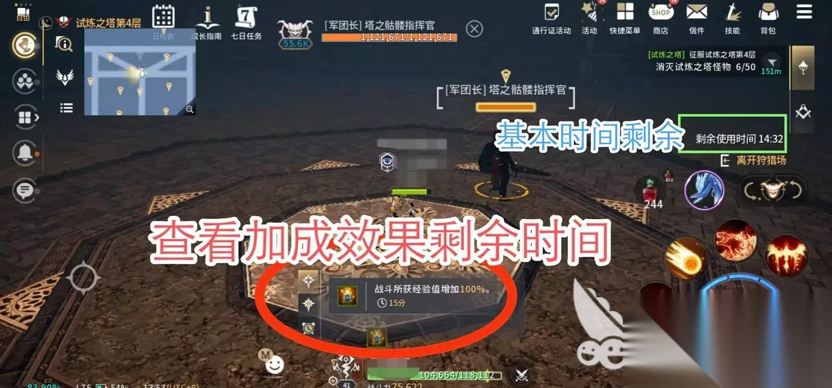 选好角色之后就是控时间了,每日可参与3次,每次进入后需在30分钟内尽可能推进层数。后面的时间就会比较轻松,毕竟战力摆在那里,所以说前面一定要冲的猛。优先完成怪物击杀任务,获得额外血石奖励。战斗中如果感觉到力不从心了,是可通过工会援助功能去召唤队友的。当剩余时间不足10分钟时,就要转火去专心打BOSS即使失败也能获得部分奖励,避免浪费次数。敬重印记优先兑换超限体能炼血,提升体质与耐力;塔底宝箱概率开出紫色装备图纸,建议优先制作火属性抗性战斗服。首次通关试炼塔三可解锁微幅疗愈技能,对后续团队副本帮助极大。