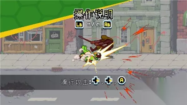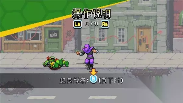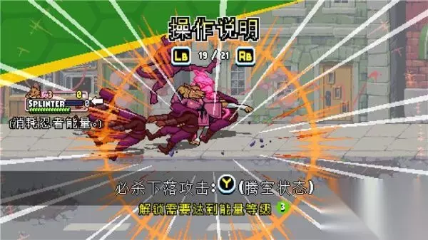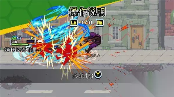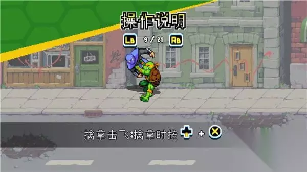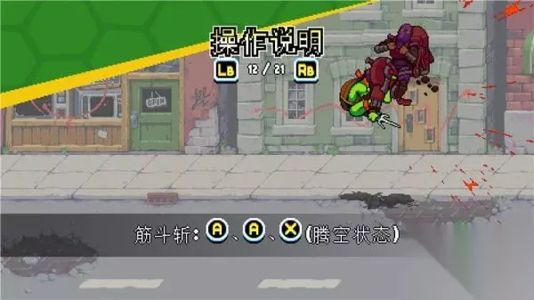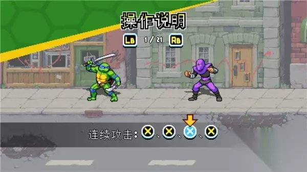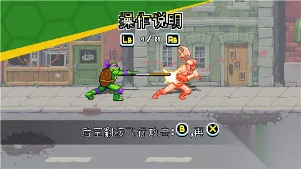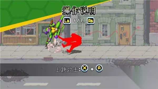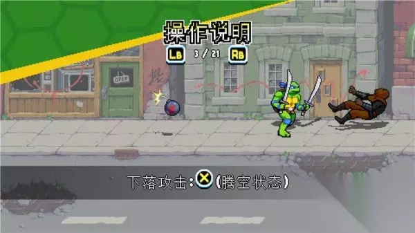 下落攻击 按键:空中+X 描述: 忍者神龟系列惯有的经典空中下踢动作。