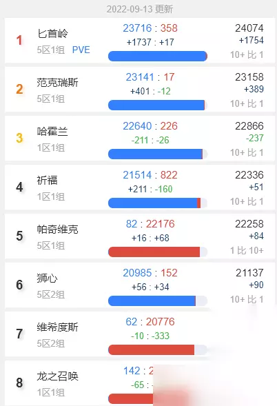 魔兽世界怀旧服人口普查9月 1.来看整体,匕首岭、范克瑞斯、哈霍兰、祈福都是联盟人口大服,这些也是老服务器,匕首岭这个PVE服务器在最近能登顶也是比较意外,不过4组服务器的人数其实是差不多的,并没有特别大的差距,虽然总人口差距不大,但是清一色的联盟服务器。
