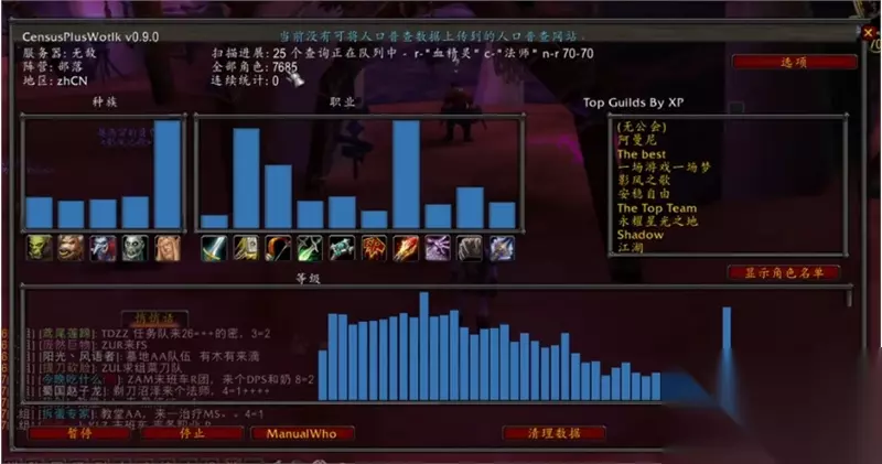 5.目前只看到有玩家曝光无敌服务器的部落人口普查数据,其中血精灵是人口最多的,其他的几个差不多,毕竟帅才是王道,其次来看人口职业分布情况,战士毫不意外是最少人的,萨满在这个版本表现不如TBC时代,这个数量也不意外,圣骑士这个是三系天赋WLK崛起的完美职业,人口数量排第二,法爷毫不意外每次都是第一,因为是新服,法爷练级的速度是最快的,职业的便利性也是其他职业不好比较的,只能说难怪是亲儿子,其次猎人人口数量也很多,因为是因为新服好升级,要论独狼什么最舒服,那么自然就是LR了,DK目前还很少,是因为新服务器一些普通玩家等级还没练到55级,不能创建DK,以后自然会上去。