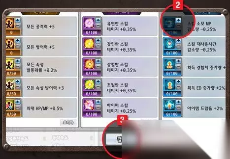 点击+或-来加减点数, 每提升一级需要消耗1个ERP,点击底部的确定按钮确定