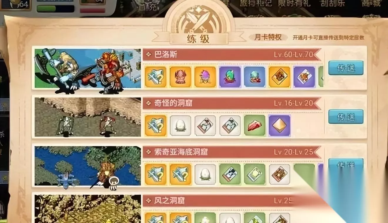 跨越地图是需要通过传送的界面选择所要前往的指定区域。部分区域传送需达成特定的条件。迷宫类区域需要开通王者契约才可以传送。