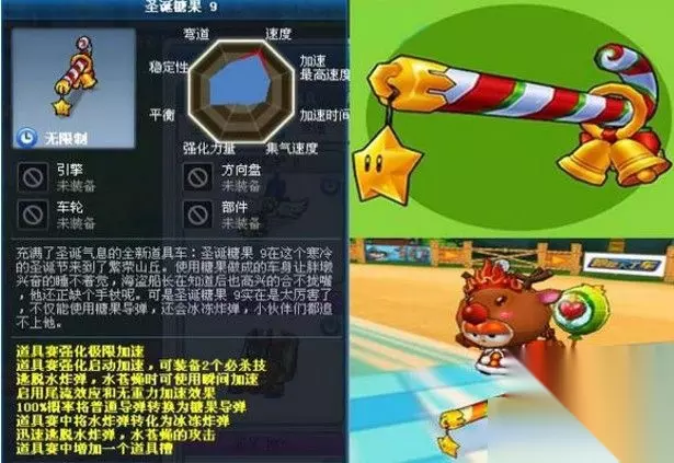 第十名:圣诞糖果9 稀有罕见的档次,精简玲珑的设计,甜美可爱的外形,层次分明的色彩感,再加上集金炸与冰水于一身的功能,曾经历一段时间绝版,至今仍难求一辆,它是土豪的专属,象征着尊贵与奢华,散发着浓浓大金链子烤猪腰的气息,拥有它,是一种财富的外在体现,没有人敢怀这辆车主人的财力,点两串烤腰子眼睛都不带眨一下,吃一串,扔一串,还不要找钱。 虽然逼 格高贵,但我们也不要过分神话它,从功能上看,只不过是个板车加强版,糖果导弹破掉气球,冰冻炸弹破掉迅脱,等于是回到大家都没有气球和迅脱的年代,本质上什么都没变,只是换个花样而已。 糖炸和冰炸虽然都是超级属性,但冰炸的效果远远不能与糖炸并论,只克迅脱,不克手解,殊不知,手解一样很快,不禁给人一种“然而并没有什么卵 用”的感觉。 缺点一:糖炸和冰炸都可以被宠物防御。(意味着敌人可以对策你,盾车带防水宠,没盾的带防炸宠) 缺点二:既没有速度又没有防御。(在如今到处都是水地雷的时代,压力山大) 优势:玩无改赛。 总的来说,糖果9的强项不强,弱势明显,除了无改赛有它的生存空间,野战无规则很难生存。