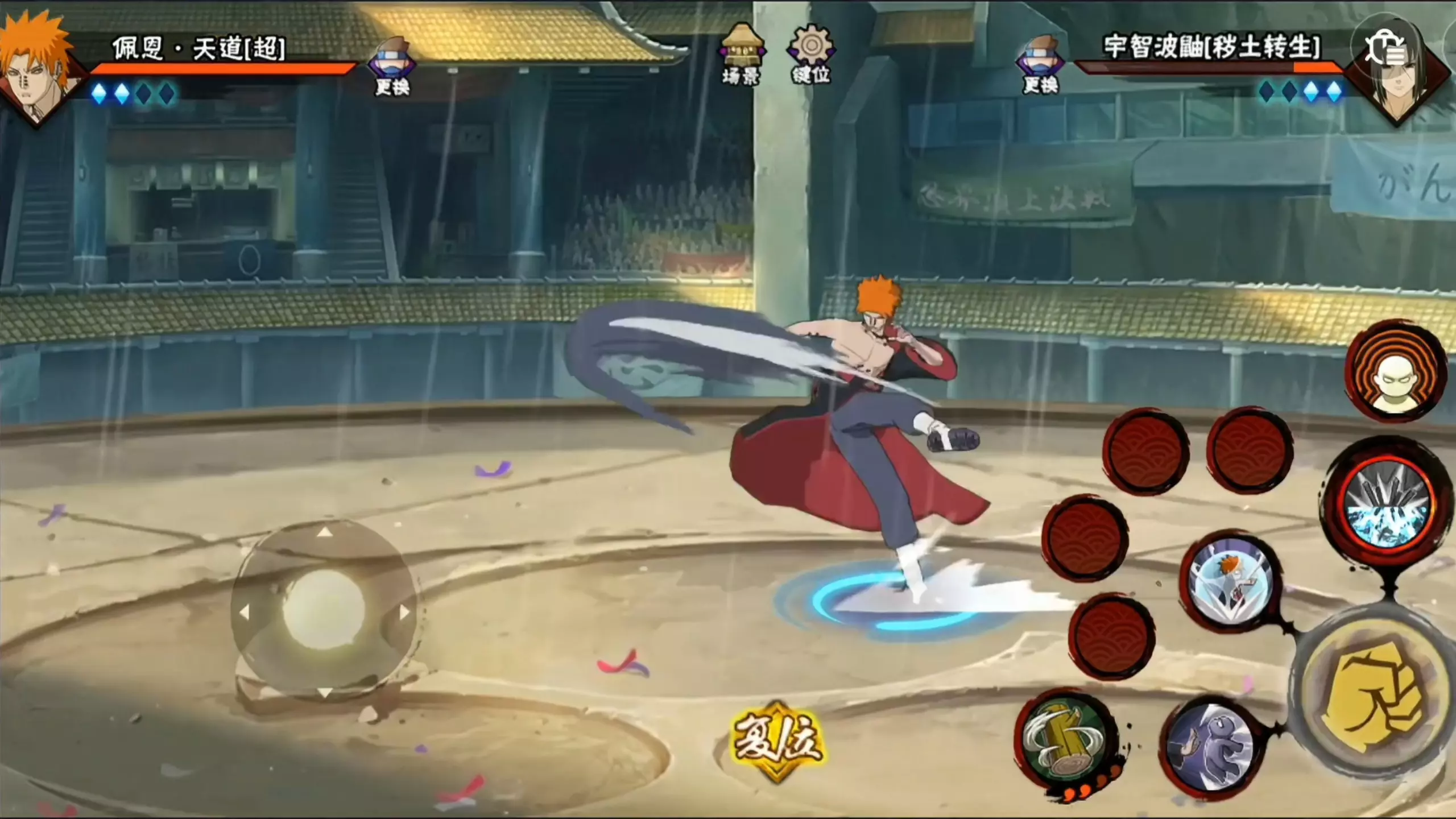 这是火影忍者手游决斗场的对战内容,玩家操控佩恩·天道[超],先后对战宇智波佐助[须佐能乎]、宇智波斑[白面具],展现了精彩的决斗场对战过程,佩恩·天道[超]在对战中发起强势攻击。
