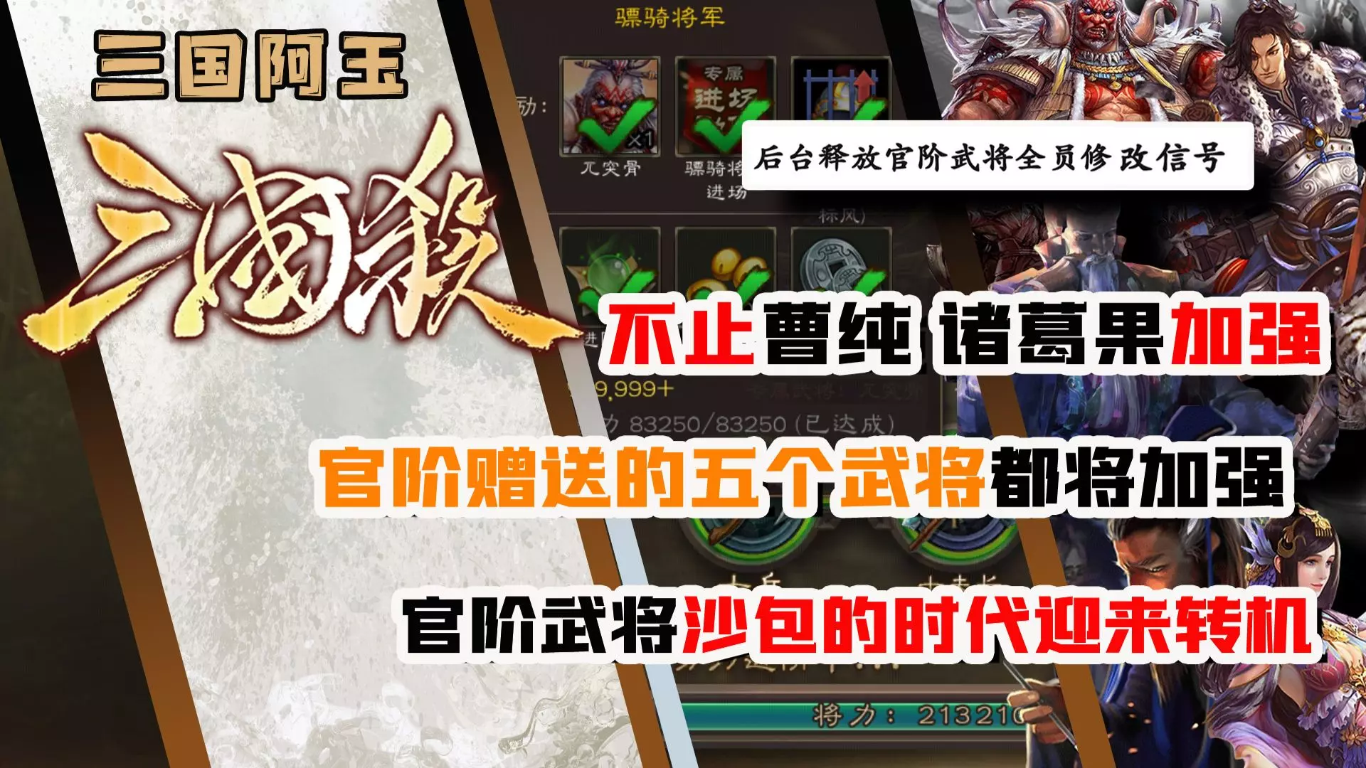 有前瞻,则必有回顾。【三国杀武将再检讨】系列旨在结合素材,分析武将在上线相当一段时间后的优化打法。 不管武将是否轮椅,我们极力追求无错手和干净利落——这或许是高提纯杀批最后的一点骄傲吧。 今年第一期讲讲吕玲绮(607),恭喜她暂时成为卢植家族族长,同时注定在OL单挑榜留名。 嘴比较碎,想哪儿说哪儿,建议分段观看,或许可以助眠(