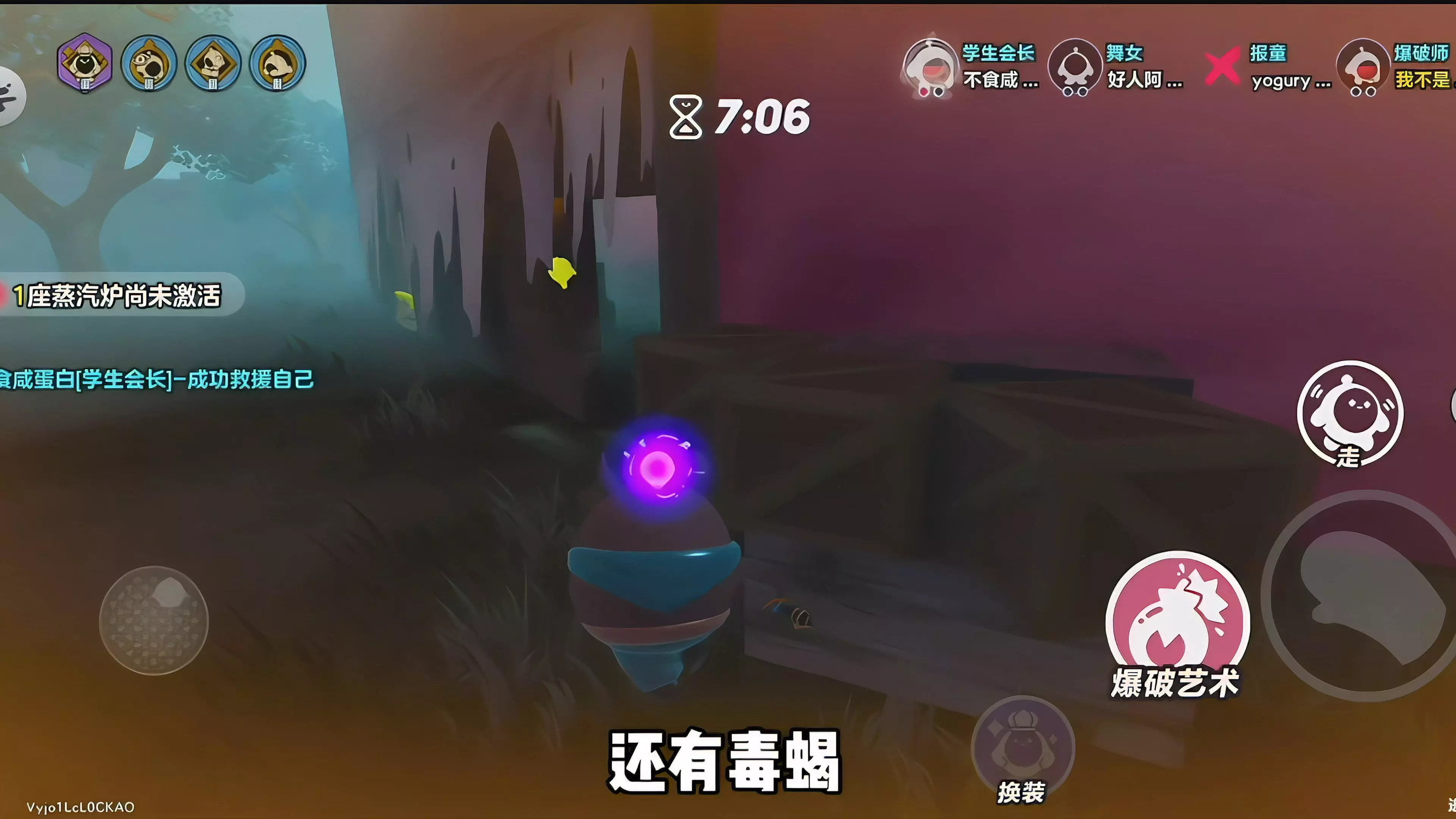 这是《蛋仔派对》逃出惊魂夜模式的游戏内容,玩家操控蛋仔角色,进行享福闪躲玩法,在场景里躲避追捕者,还和队友互动,同时需要激活蒸汽炉完成任务。