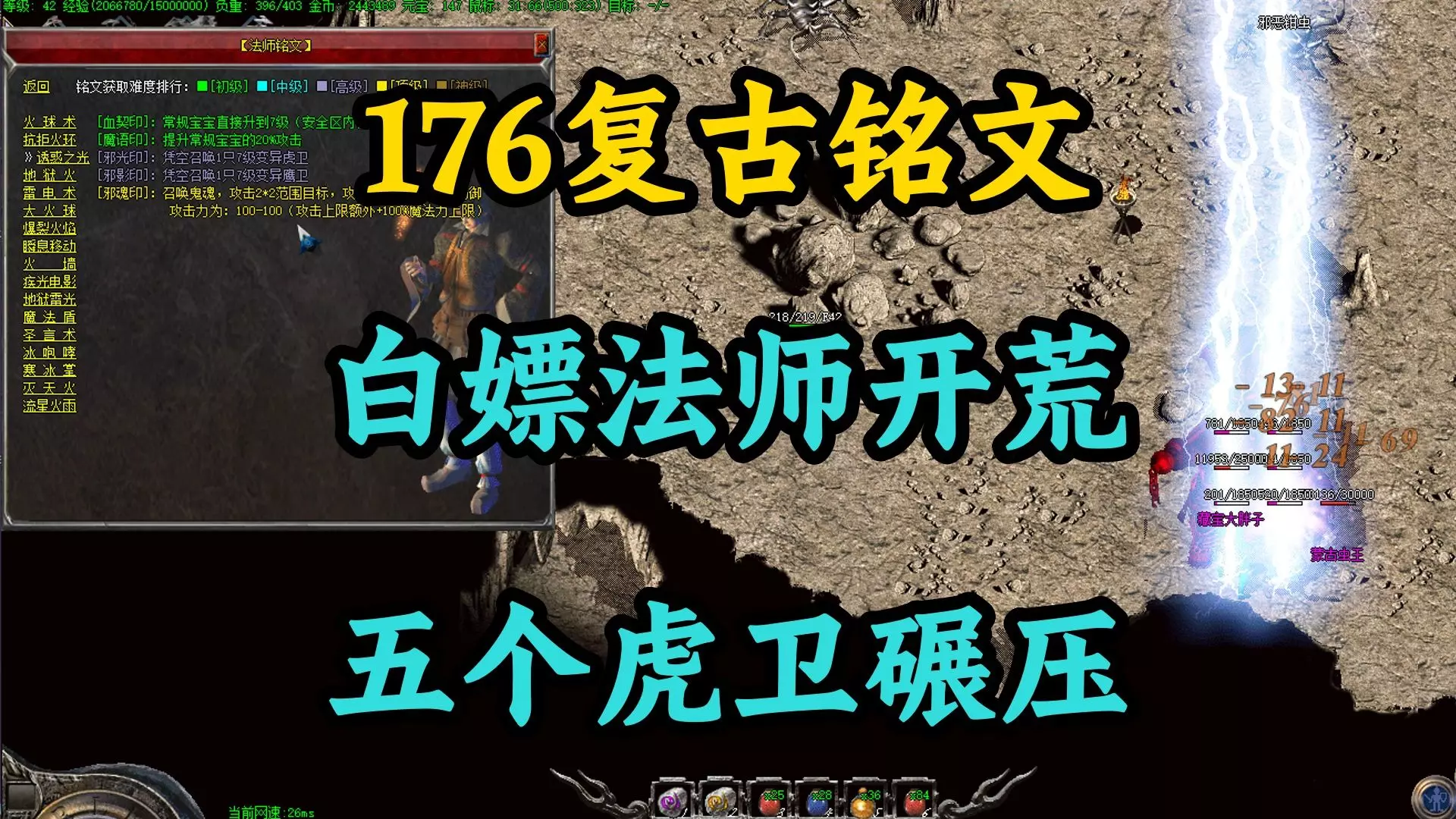 本期酒鬼带来一期纯干货的法师开局攻略,全程裸装打BOSS,利用诱惑之光复制大法轻松获得5只7级虎卫,0装备就能单挑暗之骷髅精灵! ✅新手必看3个重点: 1️⃣ 开局选法师→综合服务花500万金币可随时转职 3️⃣ 虎卫升级到7级→比奇右下池塘进隐藏地图→无伤推BOSS 🎯本期BOSS掉落:法神项链+紫碧螺+玫瑰花+10万金币,全程5分钟搞定,战士道士开局根本做不到。 产出重装 (职业) BOSS名称 隐藏地图 入口位置与详细走法 天魔神甲 (男战士) 暗之双头血魔 困惑殿堂 这是公认最难找的一个。需要先下到石墓七层,等石墓尸王钻地后,从它身后的洞口进入桃源之门。然后在桃源之门的坐标 (57,96) 附近找到一个破房子,进入就是困惑殿堂。 圣战宝甲 (女战士) 暗之骷髅精灵 地狱烈焰 从比奇城郊外一座小桥下的水塘进入。 天尊道袍 (男道士) 暗之双头金刚 深渊魔域 位于沃玛森林,具体坐标是 (215,312)。 选择右边那座较大的塔,从其左侧进入即可。 法神披风 (男法师) 暗之黄泉教主 堕落坟场 位于沃玛森林,具体坐标是 (320,56)。 霓裳羽衣 (女法师) 暗之虹魔教主 死亡神殿 从封魔谷的一口枯井进入。部分版本中,入口坐标存在错位,可能需要后退两步才能进入。