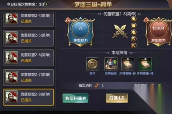 其次是梦回三国的挑战和远征,每天的挑战都可以获得武将经验,而且这个看的是主公等级,你只要主线啊,平常的任务完成得多,主公等级高了,能打的关卡就越多,而且打完之后还能扫荡,如果有兄弟有缺的东西,打到最新关卡可以扫荡,可以省下很多时间,当然大家也可以学我做一个仓鼠玩家,都先省着,到时候哪天打到后面了,再一次扫荡完,这两种都各有各的好处,毕竟早用早享受嘛!这个也是有属性克制的,大家可以开动聪明的脑瓜各种越战力打怪,前面能打简单的,后续打得多了还能挑战下面的困难关,那个难度就更高些,怎么选择都看大家。远征的话就在挑战的下面,算是一个挑战的顺延,要打通挑战的一个章节,才能去远征收米。排的武将越多,能获得的经验也就越多,武将的实力越强,能获得奖励的概率也就越大,还能获得主公经验和武将碎片,不过是有次数的,所以每天要注意,不要浪费次数了。
