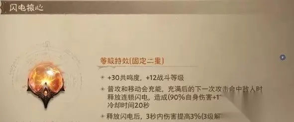 闪电核心满级是280%自身伤害+1134,3秒内增伤12%,但这个增伤和闪电冷却时间一样是20秒