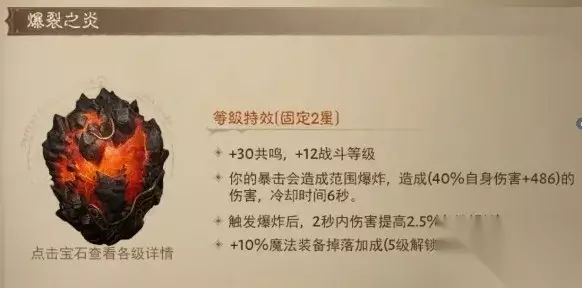 爆裂之炎是B类增伤,图片中的40%自身伤害是指伤害系数、+486是技能伤害,传奇宝石的增伤再PVP中会衰减到33.33% 三、对比其他2星宝石