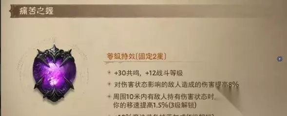 痛苦之握满级是24%增伤,伤害状态能挂上可以做到全程增伤