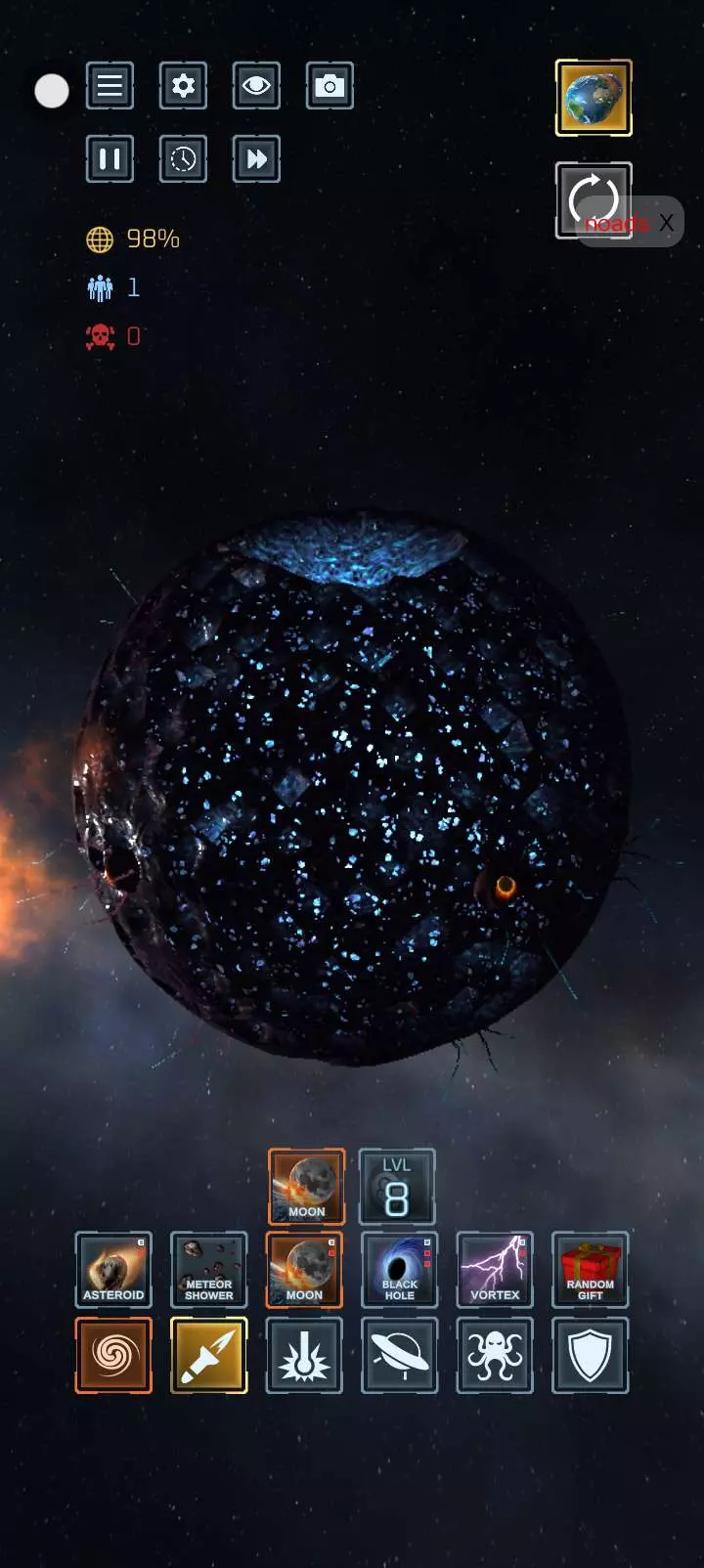 这个活的星球,长的太像克苏鲁了,而且发射星球的话,还会被他自己防御到,那个有眼睛的触手,会攻击星球已经来防御攻击的人ok我的就在这里,你们看一下