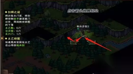 烟雨江湖桃木剑任务如何过 1、主线推进到“剑柄之谜”时玩家需要帮助太乙的道愚找回丢失的桃木剑获取他手里的碎图,道愚说桃木剑应该是被水流冲进后山的山洞里了; 2、太乙后山的山洞在东边的山脚下,不用按道愚的说法从山上飞下来,可以直接从白芍资源点往右边走到(29,29),然后轻功飞3格到(29,26),更简单一些; 3、然后在这里切换到水上漂,用水上漂从(29,26)走到(25,27)就可以进入山洞了,按下图箭头走。这里水上要走的距离是5格,水上漂需要练到第三重才行;
