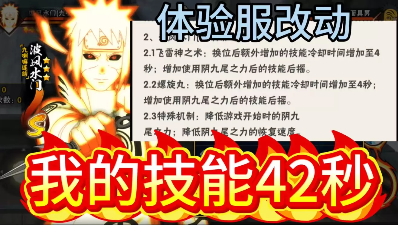这是火影忍者手游体验服更新吐槽,波风水门[九喇嘛连结]虽强度尚可,能打出强势节奏,但手感稀烂,还被增加技能冷却、技能后摇,阴九尾之力也被削弱,存在不少问题。