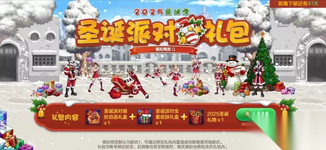 勇士们好,这里是沉浸于节日氛围中的小老D! 冬日已深,新一年的钟声渐近。小老D整理了今日上线的全职业圣诞套外观合集,一起来看看吧~ 2025圣诞派对礼包 在2025年12月24日-2026年2月4日06:00期间,勇士可通过商城>特殊礼包>2025圣诞派对礼包,前往相应界面。