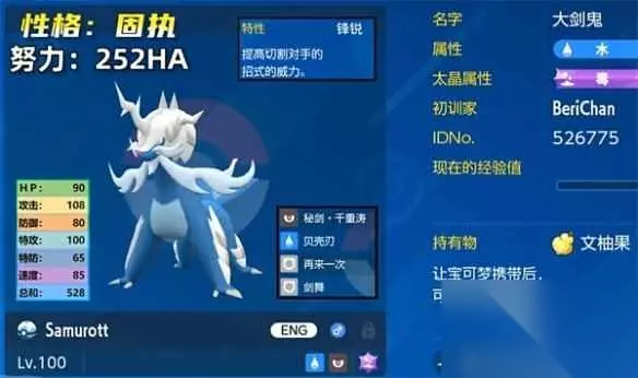 大剑鬼是五代合众地区的御三家,属性为水+格斗,是一个非常霸气的宝可梦,并且在传说阿尔宙斯中也是御三家,并且洗翠形态的锋锐特性现在看来非常强大,二者种族都是528。cpE 宝可梦朱紫大剑鬼种族多少 答:无论是普通还是洗翠都是528。cpE 1、一般形态和洗翠形态的大剑鬼种族和都是528,属于常规御三家的种族值,不过低了一点点,但是总体战斗力很强。cpE