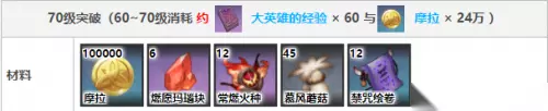 5、70级:100000摩拉、燃愿玛瑙块6个、常燃火种12个、慕风蘑菇45个、禁咒绘卷12个。