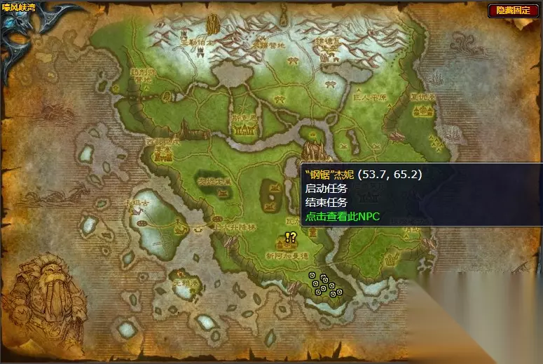 触发条件: 《魔兽世界》嚎风峡湾盾牌岭任务是与“钢锯”杰妮接取,“钢锯”杰妮要你转至新阿加曼德以南的盾牌岭,打败那些被复活的维库人,并收集5枚古代维库人徽记。 任务流程: 在新阿加曼德以南的盾牌岭,打败那些被复活的维库人,收集5枚古代维库人徽记回到新阿加曼德“钢锯”杰妮处交任务即可,完成任务可以获得4金币和70银币 ,还有325点部落先遣军声望。 任务NPC:“钢锯”杰妮 “钢锯”杰妮位置图 坐标(53.7,65.2)