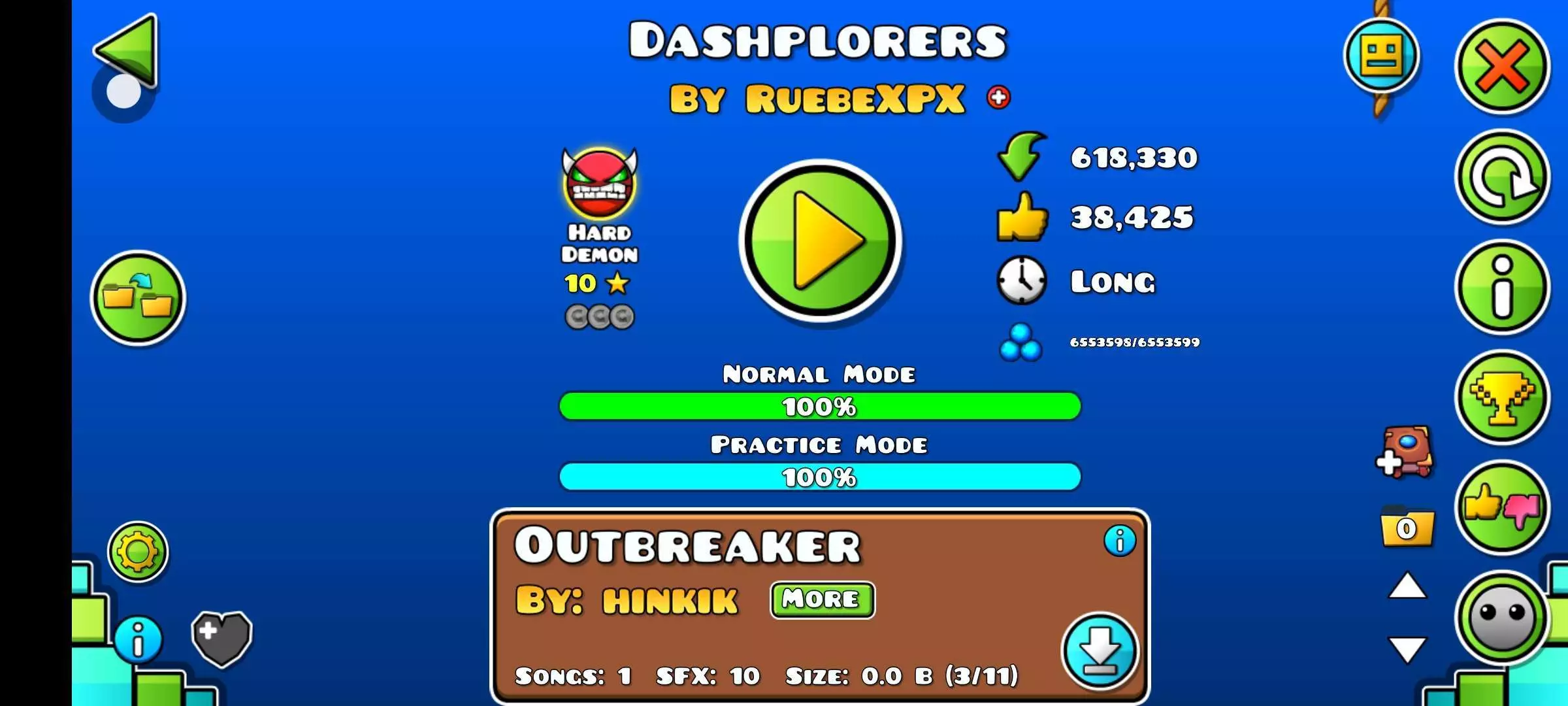 几何冲刺 DASHPLORERS(hard demon)100% 音乐好听