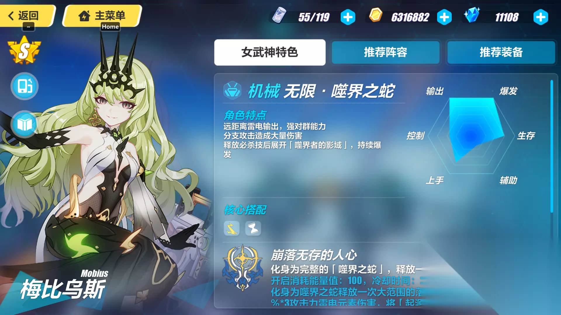 崩坏3近日推出了全新的S级女武神:噬界之蛇-梅比乌斯,相信不少玩家都抽到了这位角色。很多小伙伴想知道崩坏3噬界之蛇用什么圣痕好,那么今天小编就为大家带来这个问题的解答,为大家推荐目前版本中最适合噬界之蛇的两套圣痕,感兴趣的小伙伴一定要看下去哦。