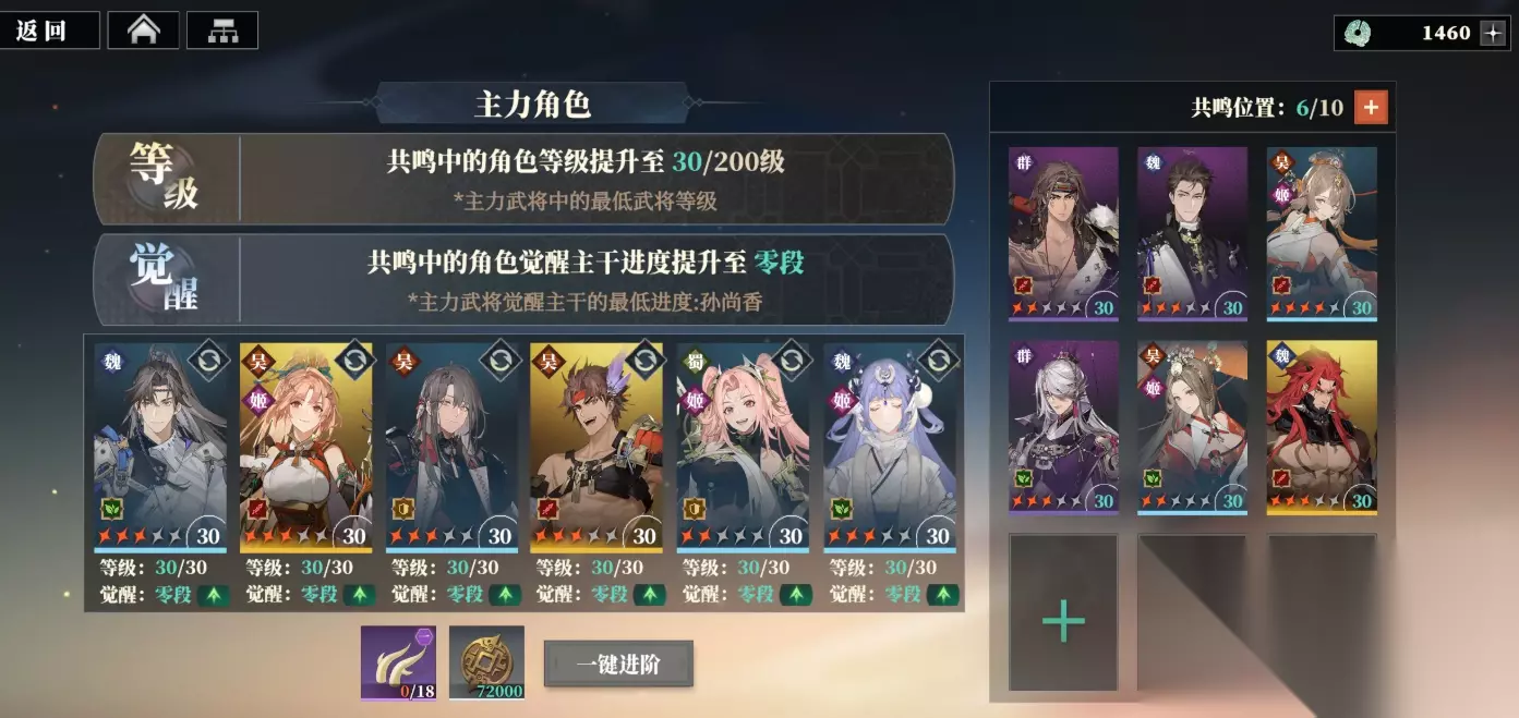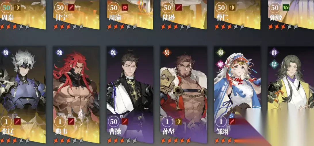 武将养成: 继承了“三军无废将”的核心设计理念,所有武将均可培养到顶级品质(无双),并且新增了多方向的转职系统。玩家可以在养成过程中为武将切换职业定位,例如曹操既可以培养为全队支援的“领袖”,也能转职为对敌人造成大量连斩伤害的“收割者”。这使得每个武将都拥有独特的玩法和定位,减少了角色间的替代性。角色之间还有缘分系统,即便是历史宿敌也能通过羁绊产生“奇妙反应”,从而玩家可以自由搭配培养出属于自己的战斗流派。