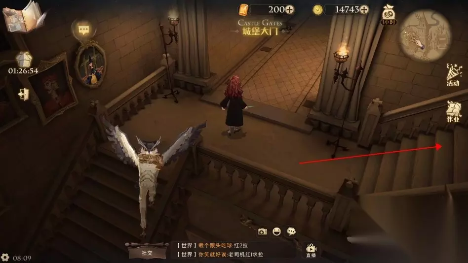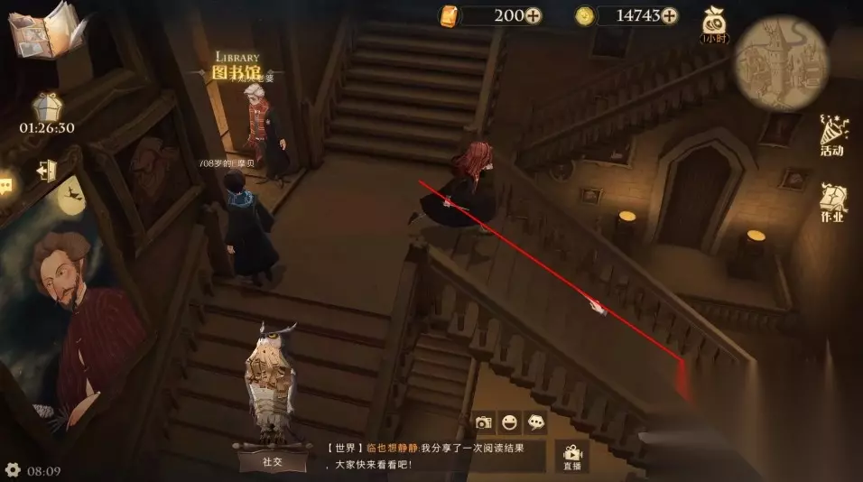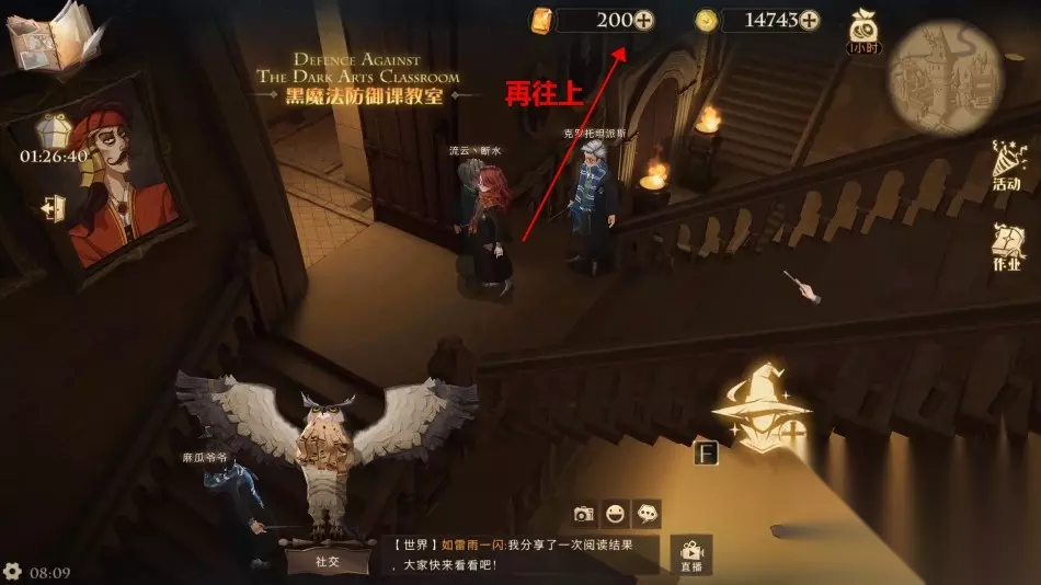 3、【魔法史教室】走法为: 城堡主楼 - 右手边楼梯(到变形课教室) - 右手边楼梯(到黑魔法防御课教室) - 走黑魔防御教室大门右边的楼梯往上(到图书馆)- 走图书馆门口对面的楼梯往下 - 然后继续右拐往下