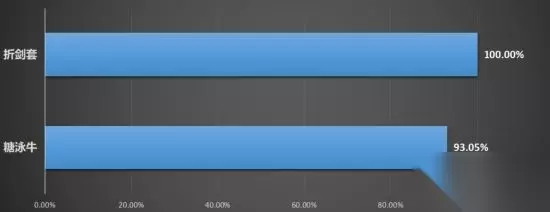 表面上看折剑套和糖泳牛差距不大,但实际携带糖泳牛时,由于缺少了这件三件套的暴击率,白字明显增多了,并且由于泳牛无法覆盖天元骑英全部的输出时间,伤害的波动也开始变大。 不过糖泳牛的优势在于控制的好的话可以在短时间内爆发出更高的输出,这一点就要看作战场合还有boss了。 不同输出流程的伤害对比